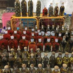 So hat der Inhaber meiner Unterkunft mir ein Tuch umgebunden, ein Körbchen mit Reis vorbereitet und mich mitgenommen!