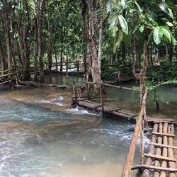 Ein Stück außerhalb von Luang Prabang liegt mitten im Dschungel der Kuang Si Wasserfall.