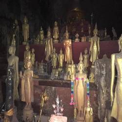 Die Pak Ou Caves befinden sich in einer Steilklippe direkt am Ufer des Mekong. In den zwei Höhlen befinden sich ein paar tausend Buddha-Statuen in allen möglichen Arten, Farben, Größen und aus allen möglichen Epochen!
