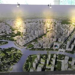 Neben massig weiteren Informationen über bisherige Schaffung der Infrastruktur, massive Landgewinnung, Vergleichsbilder heute und vor 30 Jahren (kaum zu glauben), usw. ist das Highlight ein großes Modell des Stadtstaates. Aber auch dieses hat die Zukunft im Blick, indem geplante Wolkenkratzer rund um die Innenstadt in Form von bislang farblosen Holzblöcken bereits integriert sind.