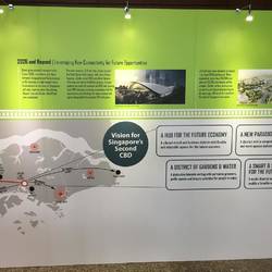 Und zwischendurch noch einen weiteren Punkt auf der Singapur-Bucket-List abhaken. Die City Gallery ist frei zugänglich und wirft vor allem einen Blick auf die Zukunft der Stadt und deren Infrastruktur. Wenig überraschend: Unglaublich spannend!! Ich weiß nicht, wie oft ich dort den Kopf geschüttelt und gestaunt habe! Gleich im Eingangsbereich findet man eine Ausstellung über ein Stadtviertel, Jurong Lake District, welches sich über die nächsten 20 bis 30 Jahre zum absoluten Muster-Stadtviertel der Zukunft entwickeln soll - "A smart and sustainable district for the future". 100.000 Jobs, 20.000 neue Wohnungen, rein erneuerbare Energiequellen, Zugverbindung nach Kuala Lumpur in 90 Minuten, zügige Anbindung in die Innenstadt und Changi Airport durch neue U-Bahn-Linien, überall Radwege, keiner braucht länger als 5 Minuten zum nächsten Bus, Grünflächen bis zum geht nicht mehr, und, und, und.