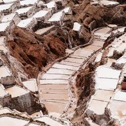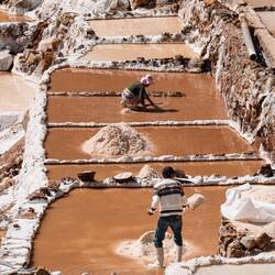Doch das war noch nicht alles, was Maras zu bieten hat. Zwei Stunden in die andere Richtung befinden sich die berühmten Salzsalinen. Wieder so ein Ort nicht von dieser Welt. Über 3000 Salzbecken reihen sich entlang eines Tals dicht aneinander. Seit der Inka-Zeit zapfen die Bewohner eine salzhaltige Quelle an, deren Wasser durch die Sonne verdunstet und das wertvolle Salz zurücklässt. Wir schauen staunend den Arbeiterinnen und Arbeiter in den Salzbecken zu, die heute immer noch in mühsamer Handarbeit das Salz gewinnen – auf gleiche Weise wie ihre Vorfahren.
