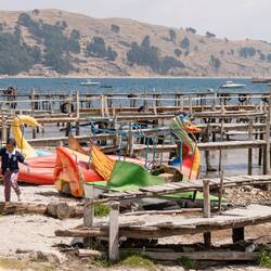 Kurz darauf sind wir in Copacabana. Nicht der Partystrand in Rio de Janeiro, sondern eine Kleinstadt am Titicaca-See. Der höchstgelegene schiffbare See der Welt (3800 M.ü.M), 15 Mal so gross wie der Bodensee – und angeblich der Geburtsort der Inka-Kultur.