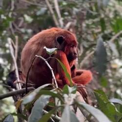 Baba ist eine von sechs jugendlichen Brüllaffen, um die wir uns kümmern. Dazu kommen drei Brüllaffen-Babys, drei Kapuzineraffen und zwei Totenkopfäffchen. Zwei Wildschweine, ein Nasenbär und ein „Bush Dog“ machen die bunte Patchwork-Familie komplett. Alles Tiere, die aus illegalem Handel gerettet, als Waisen aufgefunden oder wie Baba als Haustier gehalten wurden.