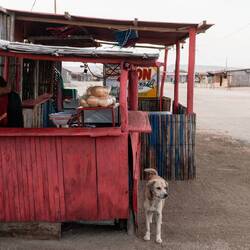Zum späten Zmittag gibt es Pescado frito und ein zähgekochtes Fleisch mit Reis und Pommes. Nach einer kleinen Siesta fühlen wir uns fast wie neu geboren. Znacht gibt es keines, das Restaurant ist schon geschlossen. Aber die Señora ist so freundlich und kocht uns einen halben Liter Wasser und rührt unsere mitgebrachte Notnahrung, eine Nudelsuppe de Pollo, an.