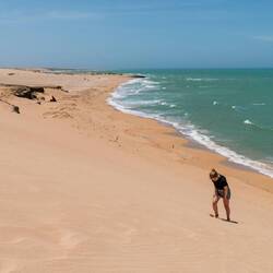 Erster Wermutstropfen: Leider pfeift uns der Wind um die Ohren - und man darf nur bis zu den Hüften ins Wasser. Zu gefährlich sind die Strömungen vor der Küste. Prompt ignoriert eine andere Touristin die Warnsignale und schwimmt zu weit raus, die Wellen treiben sie immer wieder zurück ins Meer. Rescue Diver Simi hört die Hilferufe, reagiert blitzschnell, rennt zum Rettungsring und wirft diesen ins Meer und kann sie mit Hilfe anderer an Land ziehen. Puuh.. das ist eingefahren. Hier sind laut Medienberichten auch schon Touristen ertrunken.