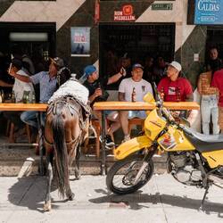 Vor einigen Jahren habe ich (Simi) in meinem Lieblingsblog ein Foto entdeckt. Unter dem Foto stand: „Ein Cowboy und sein Pferd beim Feierabendbier in Jericó, einer unserer Lieblingsorte in Kolumbien“. Genau dieses Foto ist seither in meinem Kopf abgespeichert. Da müssen wir hin und wir werden solange bleiben, bis wir genau dieses Foto geschossen haben.