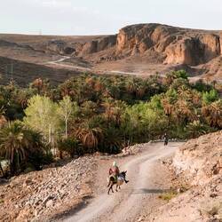Die vielen Touristen in den engen Gassen schrecken uns aber eher ab. Also weiter in die nahe gelegene “Oasis de Fint”. Ein Stückchen Paradies in einer abgelegenen Felsenwüste.