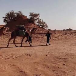 Am nächsten Morgen treffen wir unsere Guides Ismael und Ibrahim und die beiden Dromedare. Mit ihnen werden wir die nächsten drei Tage und Nächte verbringen. Yalla! Von wegen Dromedare marschieren gemächlich. In anspruchsvollem Tempo geht’s durch karge Landschaften, Steinwüsten und Sanddünen. Die Wüste rund um M’hamid gilt als wilde Wüste. Man muss sich die schönen Aussichten erarbeiten.