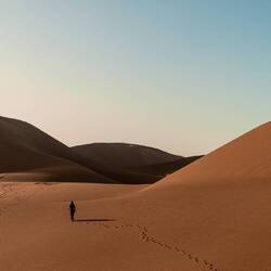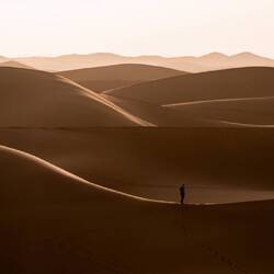 Am dritten Tag wandern wir weitere drei Stunden, bevor wir von einem 4x4-Geländewagen aufgelesen werden. Es wären noch ein paar Wander-Tage mehr notwendig, um bis nach Erg Chegaga zu gelangen. Also kürzen wir ab, nehmen das Wüsten-Taxi und verabschieden uns von unseren Guides. Diese Wüste hat nämlich noch ein Ass im Ärmel. Erg Chegaga - die grössten Sanddünen Marokkos - ist absolut surreal. Als würde man auf einer Mondlandschaft umherwandern. Ein endloses Meer an feinem Sand.