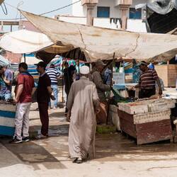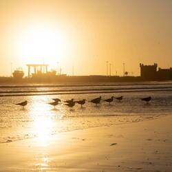 Für Muslime gilt der Konsum von Alkohol als haram (verboten). Liberalere Kreise sehen dies jedoch nicht so eng. Und gerade sind wir in einem weltoffenen Städtchen angekommen: Essaouira. Hier hat es erstaunlich viele Bars und Restaurants, die sogar während Ramadan Alkohol ausschenken. Und so sitzen wir wenig später mit John auf einer Restaurant-Terrasse mit Blick auf Hafen und Stadtmauern - bei einer weiteren Flasche Weisswein.
