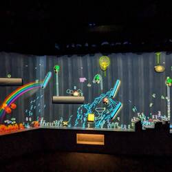 Im zweiten Teil sind drei verschiedene biome auf die Wände und Böden projeuiert. Dschungel eine Stelle mit Wasserfall und das Meer. Hier laufen, krabbeln und schwimmen verschiedenste leider bereits ausgestorbene Tiere herum und man kann interaktiv über eine App diese einfangen und ihre Informationen sammeln unter anderem wo sie lebten und wann sie ausstarben. Anschließend lässt man sie wieder frei. Wir haben hier versucht so viele Infos wie möglich zu fangen.