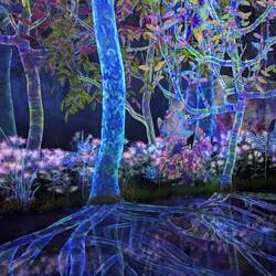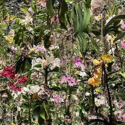 Diese Installation sind hunderte lebende Orchideen, die verkehrt herum von der Decke hängen und wachsen. Diese hängen an Seilen und reagieren auf anwesende Besucher, in dem sie hoch oder runter fahren.
