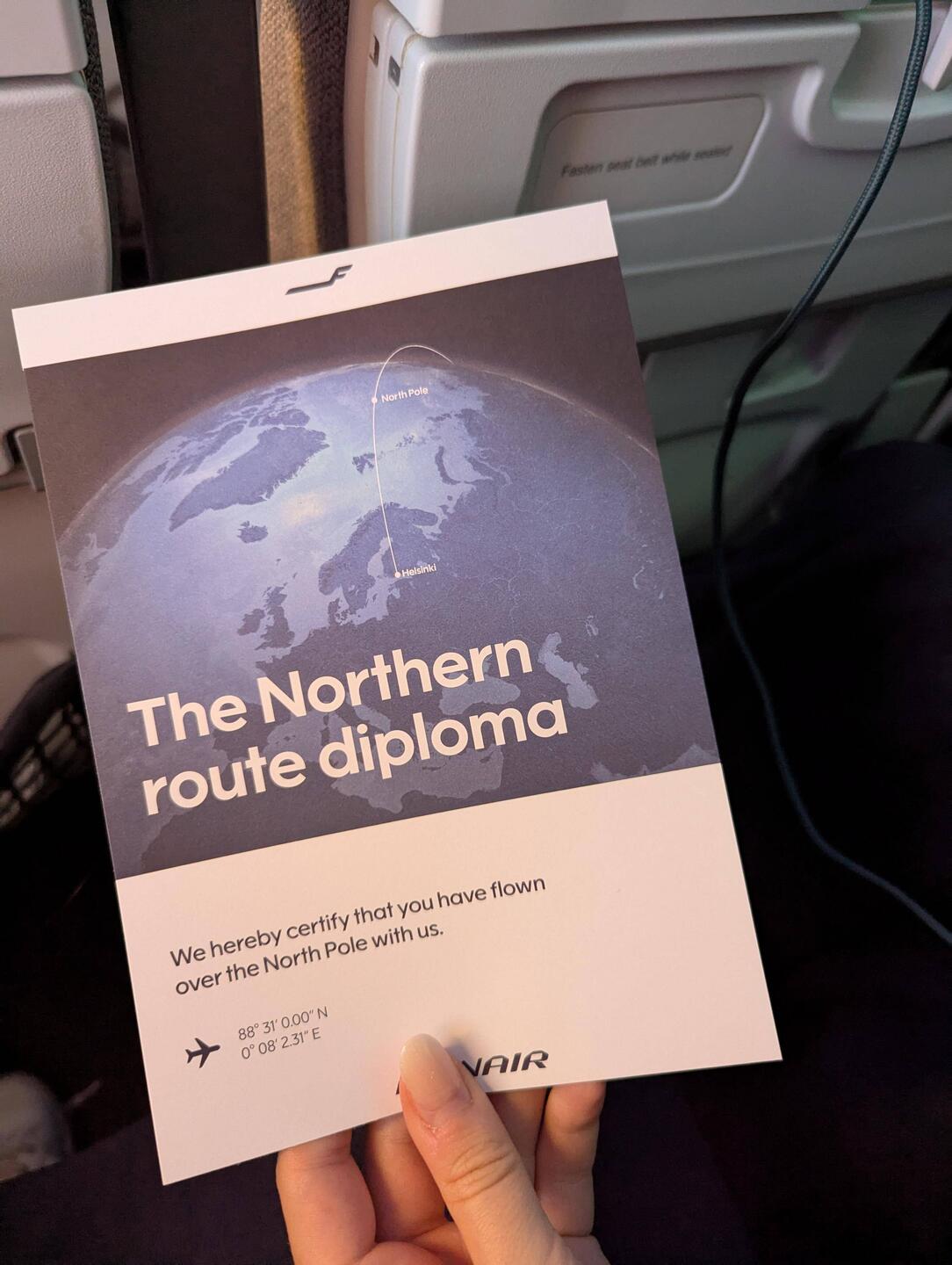 Dieses Mal sind wir Russland über die nördliche Route ausgewichen, direkt an Alaska vorbei und dann über den Nordpol geflogen. Haben extra ein Diplom dafür bekommen.