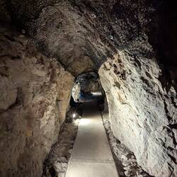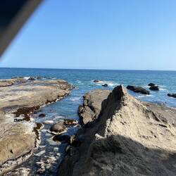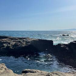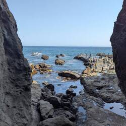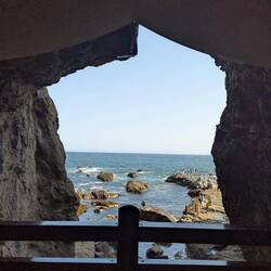 Es gibt hier zwei schöne Höhlen, die einmal durch die Gezeiten geformt wurden, bevor sich die Insel durch Erdbeben weiter aus dem Meer erhoben hat. Diese wurden früher für spirituelle Zwecke besucht, heute kommen hier viele Touristen hin. Früher glaubte man, dass eine der Höhlen mit der Eishöhle am Mt. Fuji verbunden sei, wer weiß..Okumaya devam et