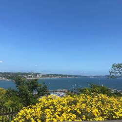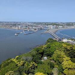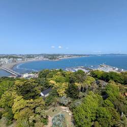 Im Vergleich zum zuletzt besuchten 450m Skytree ist die Sea Candle mit ihrem 60m winzig. Doch natürlich lassen wir es uns nicht nehmen auch hier rauf zugehen und den Ausblick zu genießen. Wir müssten 20 Minuten warten bis wir hoch knnten und haben in der Zwischenzeit ein Yuzu Eis gegessen. Super Blick über die Insel, auf die Bucht und natürlich einen Blick auf den überall gegenwärtigen Mt. Fuji. Es war ein wenig windig hier an der Küste, aber dennoch haben wir bei dem ansonsten super Wetter nicht vor der Open Air Plattform zurückgeschreckt. Um uns flogen auch einige Schwarzmilan herum, die vermutlich darauf aus waren den Touristen ihr essen aus der Hand zu klauen, zumindest würde hier überall davor gewarnt. Runter ging es dann über eine Außentreppe.Okumaya devam et