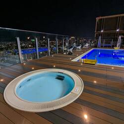 Das Hotel ist unfassbar groß und relativ neu. Das Einchecken läuft komplett automatisch und wir haben Direktorinnen Anruf bekommen, das unser Gepäck auch schon da ist. Unser Zimmer ist im 36. Stock und wir haben eine super Aussicht auf die Stadt. Das Zimmer ist nicht riesig, hat aber alles was man braucht. Wir schauen uns heute auf jeden Fall noch die Dachterrasse an. Neben einigen Restaurants gibt es im Hotel sogar einen Supermarkt - verrückt.