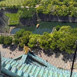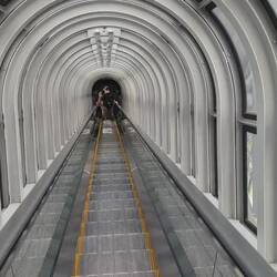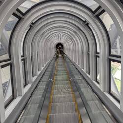 Wir müssten etwas 15 Minuten anstehen, später war die Schlange viel länger, es lohnt daher die Karten online zu kaufen. Drinnen ist es etwas eng,.da mittig das Treppenhaus ist und je Stockwerk drumherum die Ausstellung. Das ganze sind 8 Stockwerke, wobei 7 übersprungen wird und auf 8 die Aussichtsplattform ist. Es gibt einen Fahrstuhl der direkt zu Stockwerk 5 führt, den nehmen die meisten, denn die meisten schauen sich die Ausstellungsstücke gar nicht an und laufen einem trotzdem planlos vor der Nase rum.
