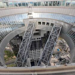Ein futuristisches Gebäude mit tollen Blick auf die Osaka Innenstadt. Die 2.Fahrstühle sind nicht sonderlich schnell, daher steht man etwas an, aber dann kommt man schon mal ziemlich hoch, auch mit den Rolltreppen kann man fahren. Nur für das oberste Deck muss man dann zahlen. Der Ausblick ist dann auch toll, auch wenn man nur so 160m hoch ist, aber das reicht um den Fluss Yodo, der Hafen und der Flughafen.