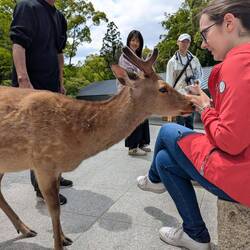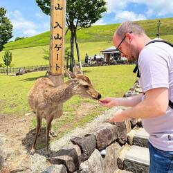 Wir sind heute morgen extra früh aufgestanden um möglichst früh den Zug nach Nara zu nehmen. Zum Glück fährt der direkt von unserer Station ab, weshalb er nur aus dem Hotel raus. Und 40 Meter zurOkumaya devam et