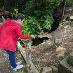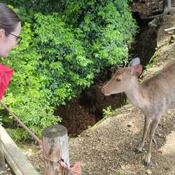 Es ist ein mega schöner Park, der in einen tiefen Wald hinein führt. Überall findet man einzelne oder Gruppen der Sika Hirsche. Diese leben nämlich hier in Nara völlig frei und im Einklang mitOkumaya devam et