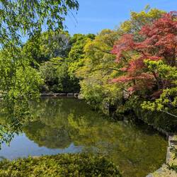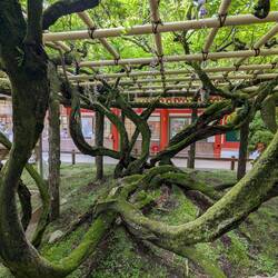 Schöner Shinto Schrein und hübsch angelegter Park. Hier stehen einige Kirschbäume die ihre äste und Blätter schön ausladend runterhängen lassen. Das sieht sicher toll aus in der KirschblüteOkumaya devam et