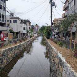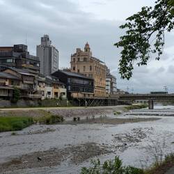 Ein Viertel Kyotos als Ziel gesetzt und los. Dabei können wir schön entlang des Flusses Kamo laufen, vielleicht schöner als an der großen befahrenen Straße entlang.