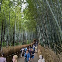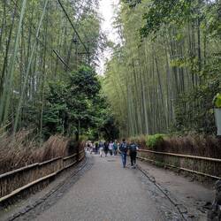 Wir haben Glück, es ist nicht so mega voll. Echt beeindruckend in mitten des riesigen Bambus zu stehen, das Geräusch wenn der Wind durch den Bambus zieht und die einzelnen Stengel aneinander reibenOkumaya devam et