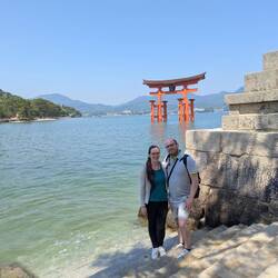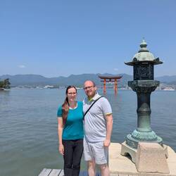 Ein süßer kleiner Schrein auf der Inseln Miyajima. Ein kurzer Spaziergang an der Promenade und wir sehen als erstes das große Torii im Wasser. Erstmal ein paar Fotos gemacht und dann direkt zum Schrein. Der komplette Schrein steht im Wasser, wenn Flut ist. Bei Ebbe steht er nur auf Sand. Der Schrein ist nicht groß, aber super schön gestaltet. Alles ist in orange und weiß gehalten. Von Schrein aus geht ein kleiner Steg ins Wasser, von dem das Torii sehr gut zu sehen und zu fotografieren ist.
