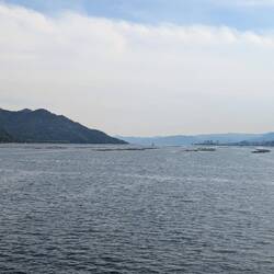 Auf dem Wasser geht's dann nochmal vorbei am Torri, das mittlerweile durch die Ebbe völlig am Land liegt und vorbei an den ganzen Austern Farmen, die hier überall in der Bucht zu sehen sind.