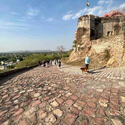The Fort is very imposing. Made of the lighter sandstone, built in Rajput style.