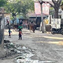 A farming community, everyone's cow or cows were waiting outside their houses to be let in and fed. We brought some bracelets from a lady making them in her tiny shop. Everything was so cheap it was 150 rupees for four bangles. That is £1.50!!