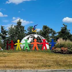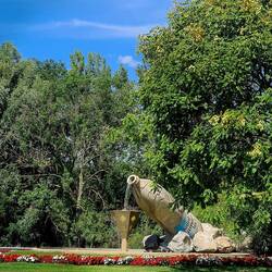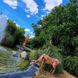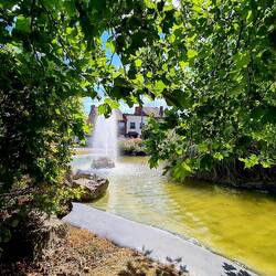 Balade avec Albert dans le parc et à côté des jets d'eau...