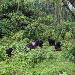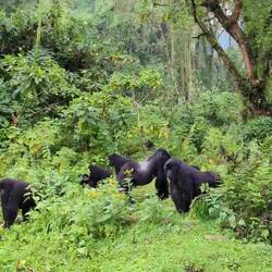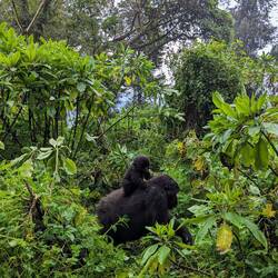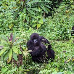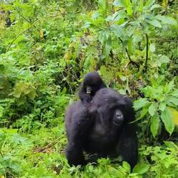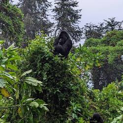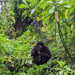 Finally I made it to Volcanoes National Park in northern Rwanda for the main event, Mountain Gorilla trekking! We trekked into the jungle to see these magnificent creatures, it was so beautiful seeing them peacefully eating in their natural habitat, watching us as we watched them. The family we visited was the Amahoro family, which means peace in kinyarwanda, the local language. The family consisted of 2 silverbacks, and a range of gorillas of all ages down to young babies. We watched them in the clearing for a while then went to watch some of them climbing the trees. We're warned to keep a distance from the gorillas for their safety, but that can be difficult as they are clearly curious and wander past for a good look, even reaching out to touch at times. I felt extremely lucky to get to see them!