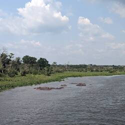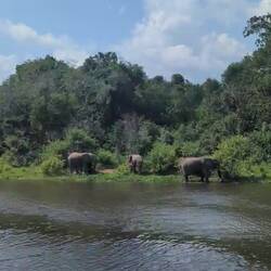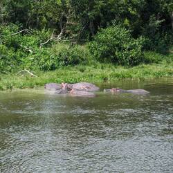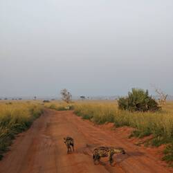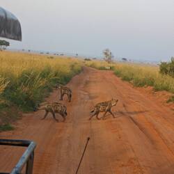 The following day we had a couple more game drives in the National Park, which is the biggest and oldest in Uganda. I saw a family of hyenas really close up, which are my favourite animals in Africa after the elephant. I also saw loads of giraffes, a leopard with an antelope in a tree, buffalo, bucks, and warthogs. We also went on a river safari where we saw more large herds of elephants and pods of hippos. We went to the bottom of Murchison Falls to see the power from that direction, and the current of the river was so powerful that the boat could only get so close, and struggled to keep even.