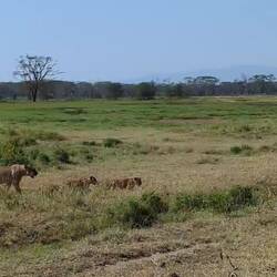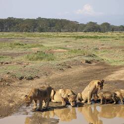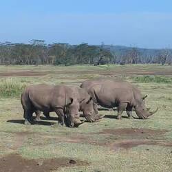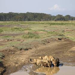 Another day and another great lake in Africa, next we were off to Lake Nakaru. The draw here is the large flocks of greater and lesser flamingos. What I was not expecting was to get so close to 5 white rhinos! Up until now I had only had very distant sightings of lone rhinos, and this park had both black and white rhinos. The black rhinos were hidden away from the road with a new baby, but the white rhinos were happily chomping away at the grass just meters away from the van. This was an amazing sighting in itself, but at the same time there was a pride of lions on the other side of the road chowing down on a young buffalo. It was quite stressful as I didn't know what direction to look in! For a few minutes the rhinos were forgotten as the whole pride including the cubs came right to the road to take a drink from a very dirty looking puddle. I guess there is less chance of a crocodile lurking or a surprise hippo attack coming from a puddle!