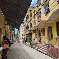 Next we moved onto our final stop on the coast, Mombasa. Mombasa is the oldest city in Kenya, founded in around 900, and was a major port city by the 12th century. It had been controlled by various powers over the centuries and as such has a really interesting mix of Swahili, Arab, British and Portuguese influences. We didn't have long in Mombasa so we wandered around the narrow alleys of the old town, visiting the historic buildings and trying the street food. We also did a tuk tuk tour of the rest of the city, visiting the local market, the coastline where you can stroll the promenade and eat freshly fried crisps, and the giant elephant tusks, a monument to commemorate a visit from The Queen in the 1950s. Mombasa was a great city and I would have happily spent another couple of days there, but alas I had train tickets booked!