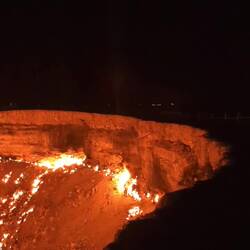Next we got into some 4x4s and headed into the middle of the desert to the Darvaza gas crater, aka "The Door to Hell". This isn't actually a crater but is a sinkhole caused by some sloppy soviet engineering. There are a few of these sinkholes dotted around the desert and no one is quite sure exactly how they were formed. They are leaking gas and the Russians have admitted that they set the Darvaza crater on fire to try and burn off the gas supply. Fifty years later and the crater is still burning and is showing no signs of running out of gas supply yet. We camped in the desert and watched the crater burn for hours into the night. As they say, fire is caveman TV, endless entertainment!Read more