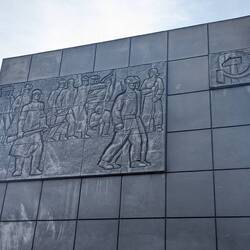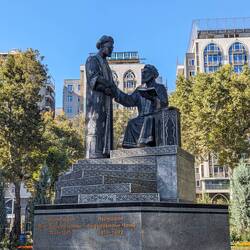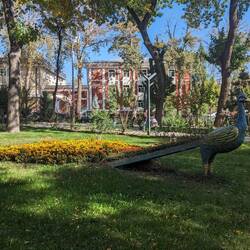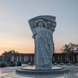 We headed back to the glitzy Ashgabat airport for an internal flight on Turkmenistan Airlines to Turkmenbashy on the Caspian Sea. We visited a Japanese POW memorial, a small Museum of Turkmenistan, and a seaside theme park with some interesting statues. Everywhere you go in Turkmenistan there are large portraits of either the current president or the previous president, who "coincidentally" happen to be father and son. These portraits are often huge, and often framed in carpet as there is a long history of carpet making in Turkmenistan.