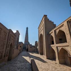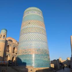 Khiva was my first stop along the Silk Road in Uzbekistan. It had been inhabited since the 8th century, but was just an outpost of the Khorezm region, of which the previous capital Konye Urgench I had already visited in Turkmenistan. Konye Urgench had been the most important city along the Silk Road until it had been sacked and razed to the ground first by Genghis Khan and then by Timur in the 13th and 14th centuries, leading to Khiva becoming the main capital from the 15th century.