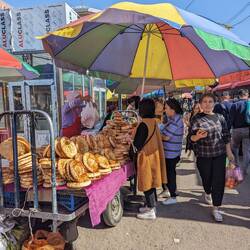 Due to the strict regime, tourists need to be supervised by a guide at all times while in Turkmenistan. However I was allowed to get an overnight train without a guide from Ashgabat to the Uzbekistan border. I had the chance to meet local people on the train, who happily insisted on sharing their food and tried to make conversation with me in a mix of their basic English and my basic Russian. There was one teenage boy in the next carriage with perfect English that mostly wanted to talk to me about how much he loved Billie Eilish! The next morning I was picked up at the train station by my compulsory guide, made a quick stop at Konye Urgench, an important archeological site on the old Silk Road dating from the 11th to the 16th century. Then I was dropped at the border to head to Uzbekistan...Read more