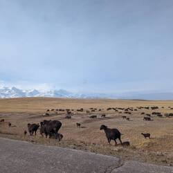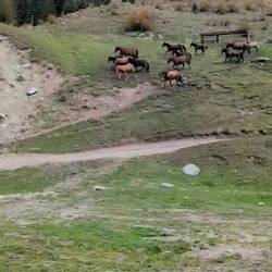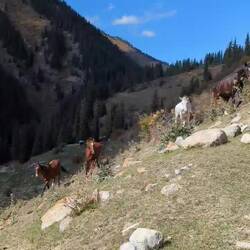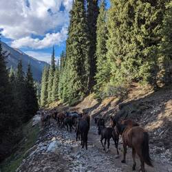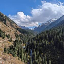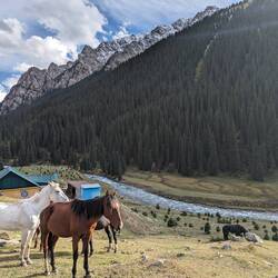 Kazakhstan is a vast country with very little public transport so the easiest way to see some of the natural highlights is to join a tour. There isn't much tourism infrastructure outside of the cities in Kazakhstan so a coach load of people are split into groups and stay in someone's house for a couple of nights, being collected every morning for the sightseeing. On the first day of the trip we hiked to visit a few lakes. Kaindy Lake was formed by a landslide during an earthquake in 1911 blocking the flow of glacial water and resulting in a sunken forest. Kolsai lake is a large lake that you can take boat trips on, so me and a few other tourists that I had made friends with went out on a pedalo.