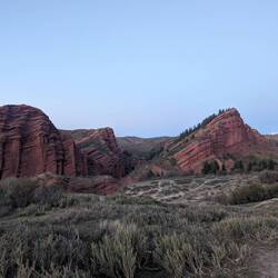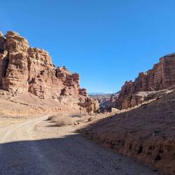 Back in the house that I was assigned to with some other Kazakh tourists, we had a good home cooked meal of dumplings and lots of tea. Then all of the people on the trip were meeting back up for a bonfire and dancing. The other tourists I was staying in the house with couldn't speak any English, but they were nice people and we tried to chat. They told me that we were supposed to prepare a dance routine for that night's bonfire, which is something I had somehow missed in the earlier briefing! Each house group had been sent a video by the tour leaders and had to come up with a dance for it. I had no idea what was happening but I just followed my housemates lead to learn a thankfully very simple dance routine. At one point they even had me dressed in a traditional Kazakh outfit, but luckily they took pity on me and told me that I didn't have to wear it! Which I was also grateful for as it was freezing outside! We all headed over to the bonfire which warmed us up a bit, listened to some music, and then everyone did their dance routine. It wasn't as embarrassing when you see everyone else in the same boat as you! This carried on into the evening with more games and dances, again I didn't really know what was going on but it was very funny. The next day we were off to see some canyons. The largest and most spectacular was Charyn Canyon.