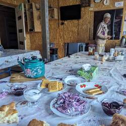 While I was trying to endure the sauna one local lady called Aliya started chatting to me and asked if I'd like to go to hers for dinner one evening as she'd like to continue to practice her English, which I did. I was interested to go inside one of the Soviet blocks where she lived. The building stairwell was original but the inside of the apartment was very modern. She lived alone as her husband had died of COVID, and her children all lived abroad. She very kindly made me mushroom pancakes with salad, and she bought me some Kazakh chocolate, which was great! She then showed me around the local area a bit which was nice of her.