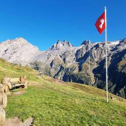 Ideale Wetterbedingungen heute: blauer Himmel und angenehme Temperaturen! Also nichts wie los! Der Juchlipass und das NünalphornLäs mer