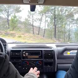 Eine Tour mit einem älteren Landrover durch einen leicht regnerischen Nationalpark