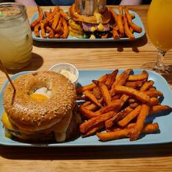 Nach dem Einschließen der Koffer ein Frühstückslokal aufgesucht
