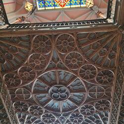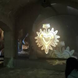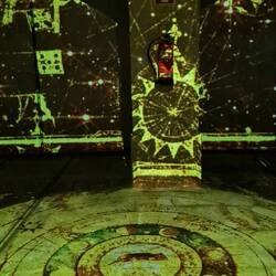 Steampunk-Fahrstuhl, der einen zum sogenannten Mahnmal des Schreckens führt: Eine durch ein Erdbeben zerstörte Kirche, welche für Konzerte genutzt wird