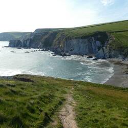 Most of the coast here is rugged and undeveloped but the ascents and descents are much more gentle than on previous days. It's easy to imagine the waves crashing onto the rocks during bad weather and there are quite a few ship wrecks in the area. But today all was calm and gentle, barely a ripple by comparison.