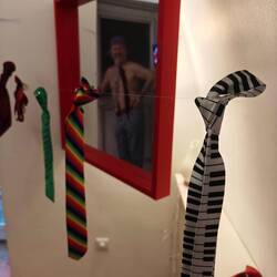 In den folgenden Jahrhunderten nahm die Cravate ganz unterschiedliche Formen an – mal breite, gesteckte Stoffbahnen wie im 18. Jahrhundert, mal schmalere, geknotete Varianten, wie sie im 19. Jahrhundert in England aufkamen. Oft wurden diese frühen Cravaten aus Seide gefertigt – ein seltenes und teures Material, das ihre Länge zum sichtbaren Statussymbol machte: Wer eine lange Seidencravate trug, zeigte damit Wohlstand und gesellschaftliche Stellung. Seide wurde in Kroatien früher sogar staatlich gefördert; bis 1841 existierten dort 46 Seidenfabriken, heute ist nur noch eine davon übrig. Die moderne Krawatte entstand schließlich im frühen 20. Jahrhundert und hat sich seitdem immer wieder in Stil und Breite verändert. Diesen Bogen zeigt das Cravaticum mit ausgewählten Stücken sehr anschaulich.